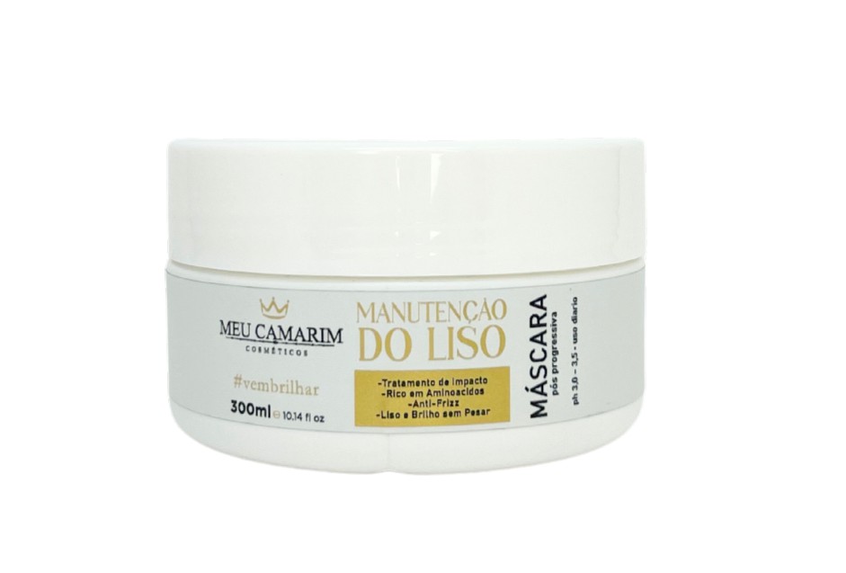 A Máscara Meu Camarim Manutenção do Liso possui em sua fórmula blend de ativos naturais os quais formam uma película protetora nas cutículas, disciplinando os fios e controlando o frizz. Sua tecnologia de escudo antiumidade repara a fibra capilar, promove o efeito liso prolongado através do selamento térmico e uso contínuo.